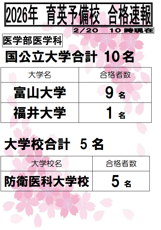 合格速報① 医学科速報、総合型選抜速報