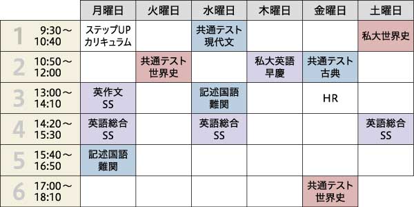 「難関私大」と呼ばれる、早慶上智などの難関私立大合格のためのコースです。年間を通して私立大学の入試問題を演習し、共通テストにも国公立2次試験にもない、その独特な問題を解く知識とノウハウを身につけていきます。